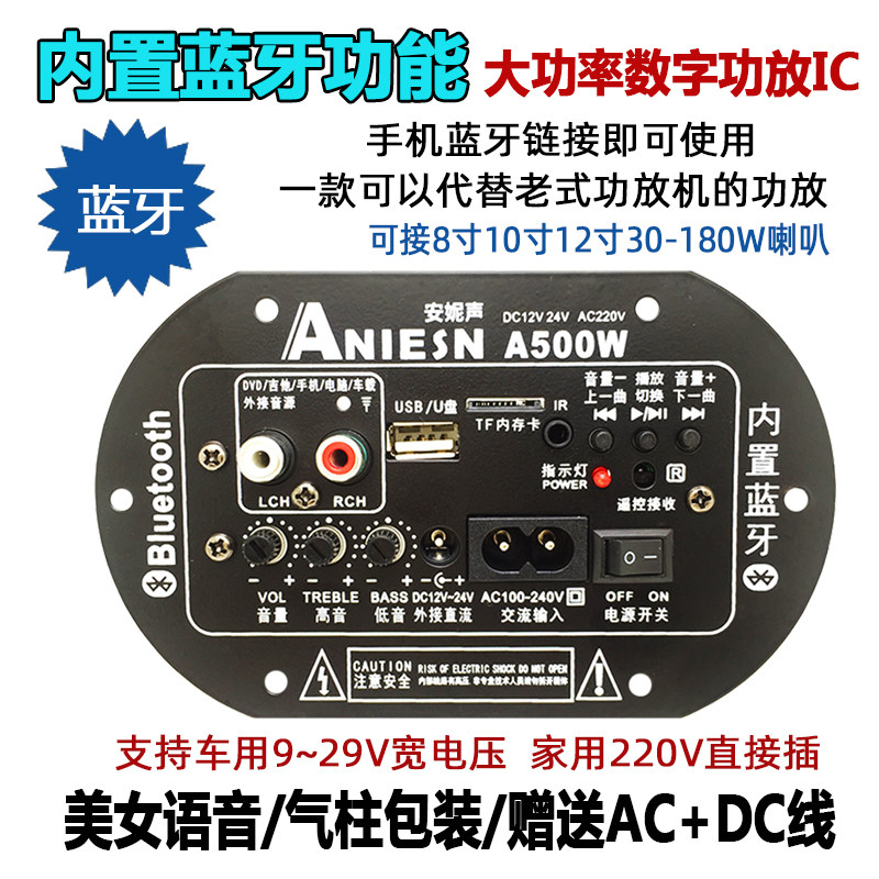 数字蓝牙功放板家用220V车载12V24V通用低音炮功放板专业功放主板