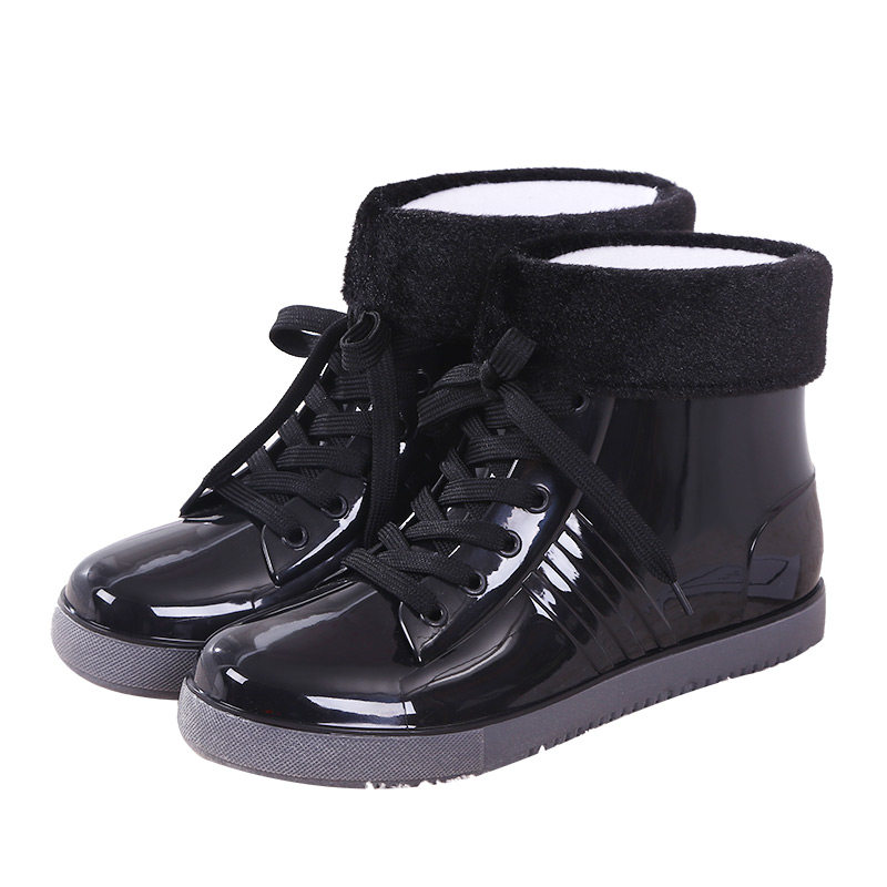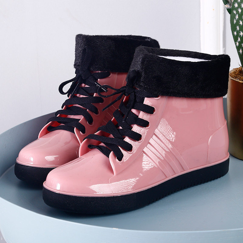 短筒水靴学生夏冬季 防水鞋 时尚 雨靴女保暖胶鞋 平底 加绒棉防滑雨鞋