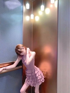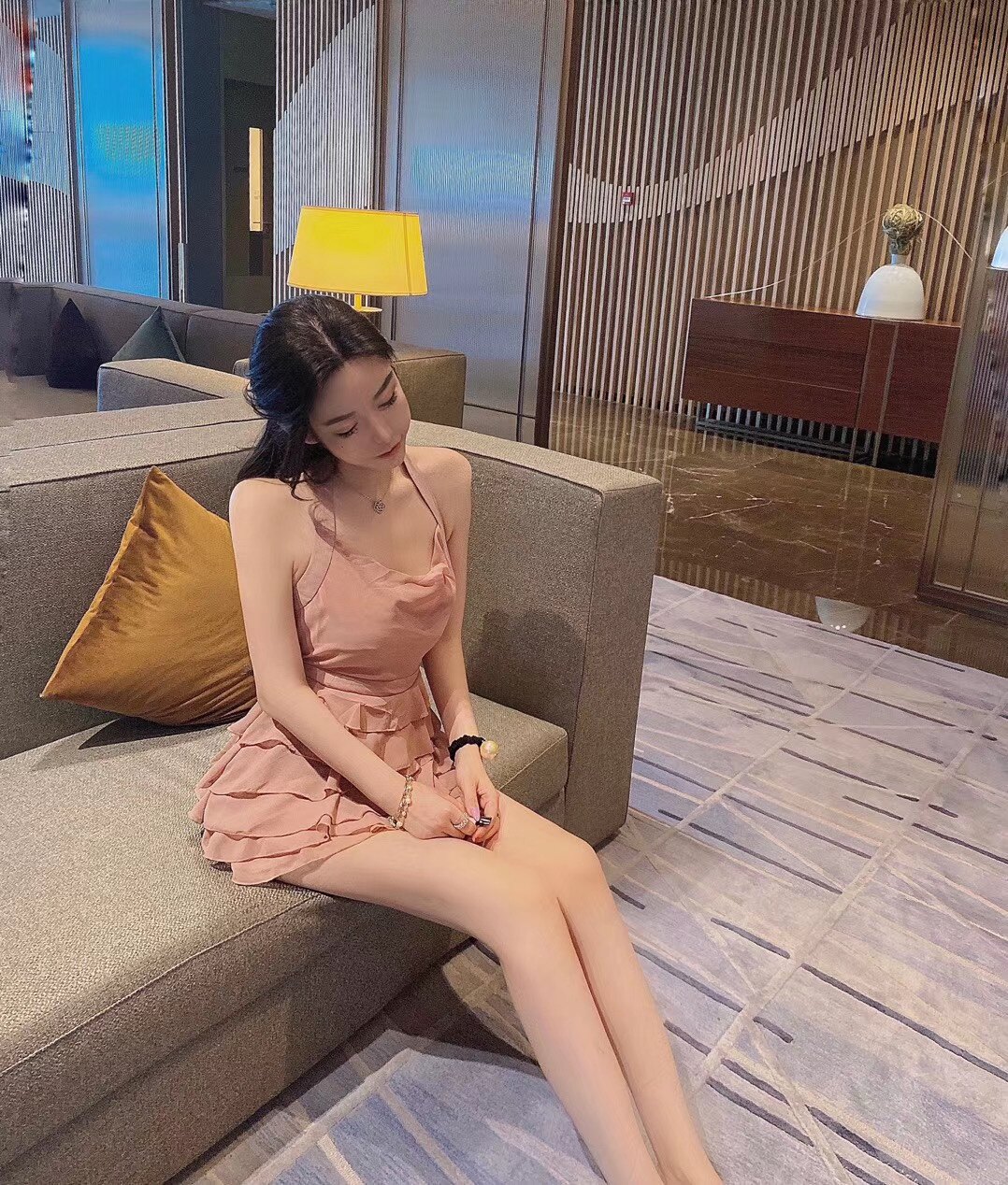 新款 定制 2020夏季 小蛋糕 挂脖露背性感百褶连衣裙 想做你