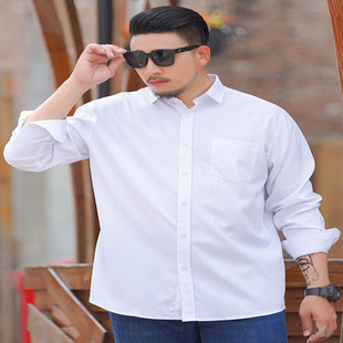 白色免烫男士 衬衫 长袖 商加宽加大号肥佬宽松职业装 抗皱正装 特大码