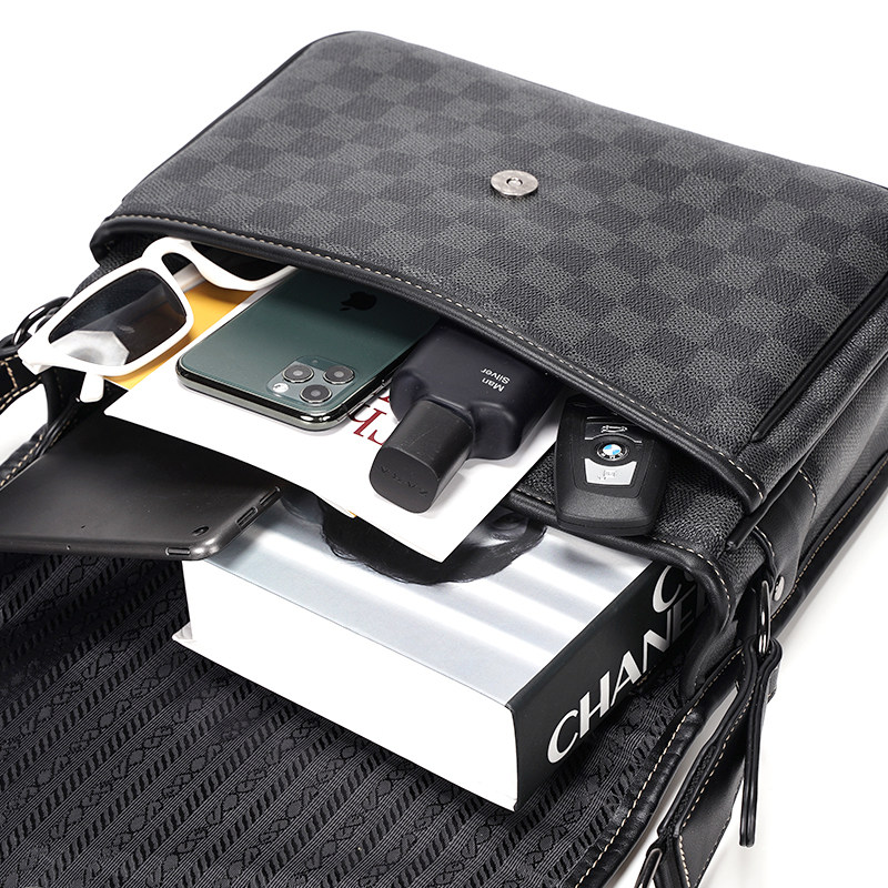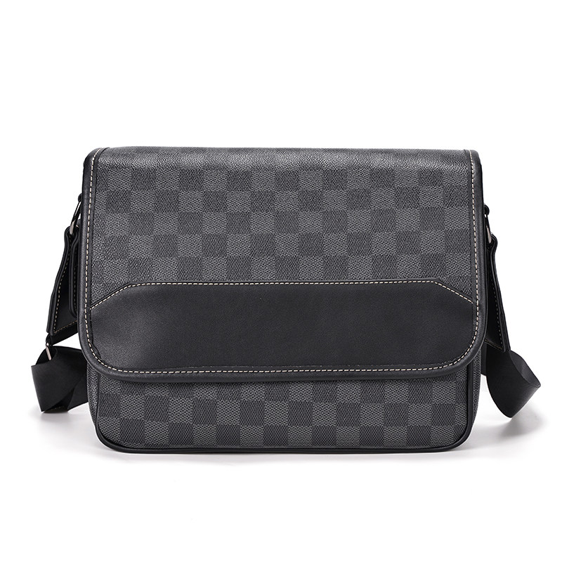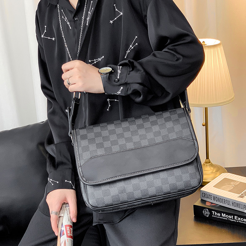 2025男士 邮差包格子单肩斜跨包潮 商务单肩包皮质大容量男休闲横款