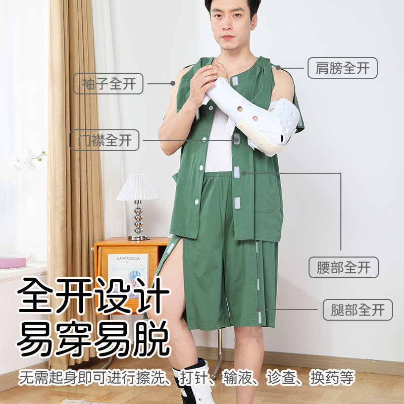 透析病人病号服易穿脱护理服手脚骨折穿 夏 衣服中风偏瘫老人服装