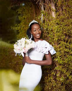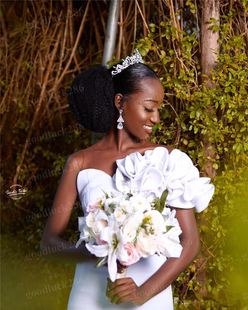 缎面轻婚纱气质新娘超仙花朵白色抹胸礼服旅拍出门纱领证白裙135