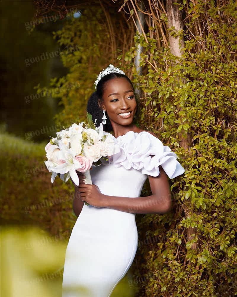 一字肩白色蕾丝轻婚纱法式 高级感订婚新娘森系超仙出门纱礼服 长袖