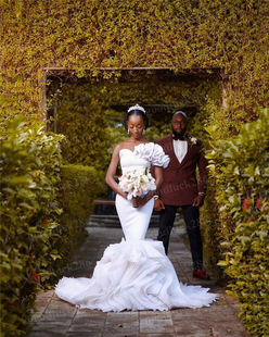 影楼情侣拍照主题服装 小众黑色抹胸极简缎面小蝴蝶结婚纱礼服 法式
