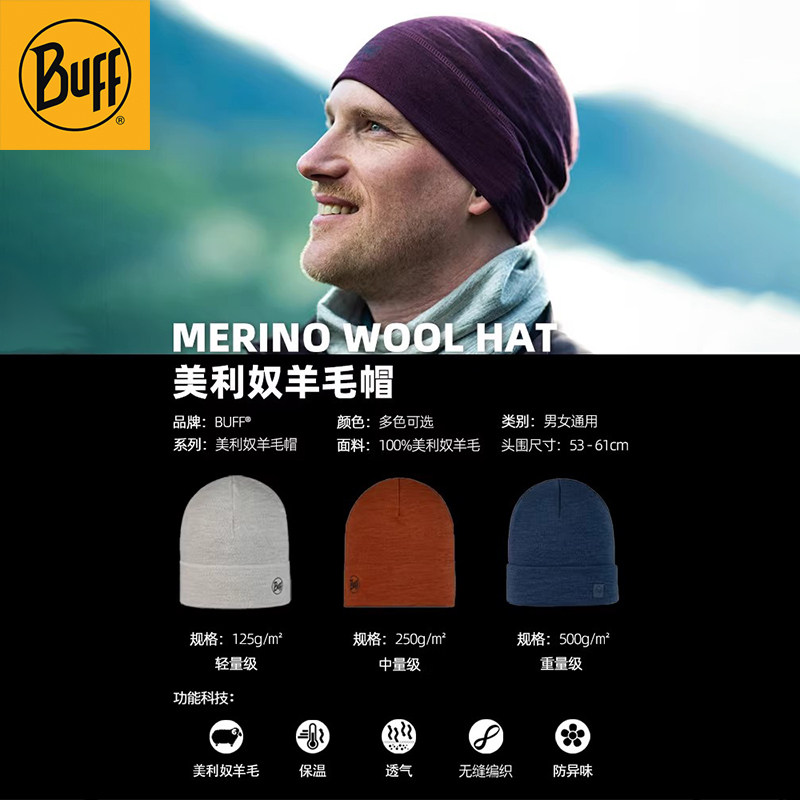 BUFF户外美利奴羊毛帽秋冬新款 防风保暖帽透气运动防冻跑步防寒