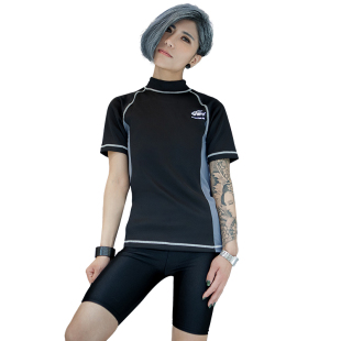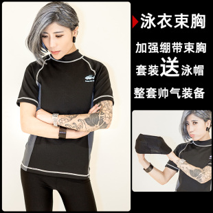 游泳衣裤 AKF古鱼王正品 莱卡短袖 T泳衣束胸长款 整套送泳帽