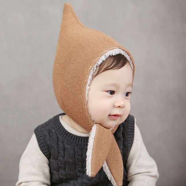 冬季 宝宝帽子加绒保暖可爱毛线帽彩子撞色洋气儿童针织护耳帽
