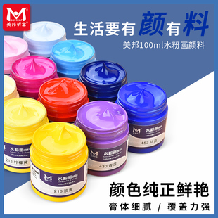 广告水彩黑板报颜料幼儿园宝宝儿童安全手指画 24色组合画画100ML罐装 美邦祈富水粉颜料美术生专用套装