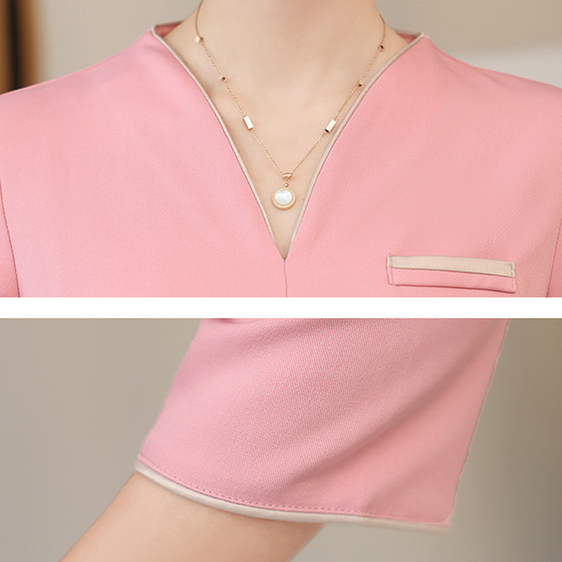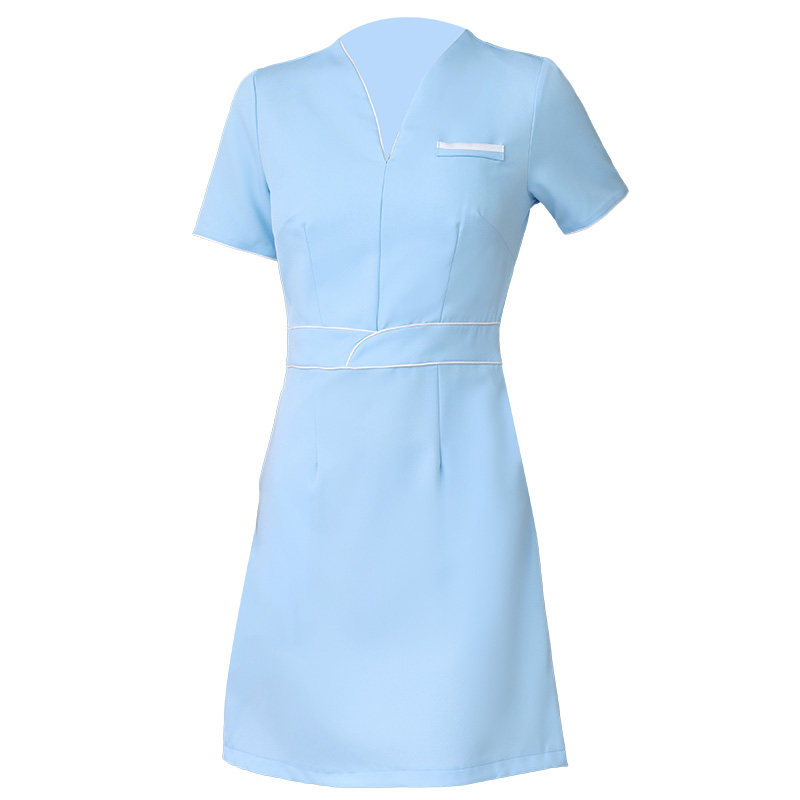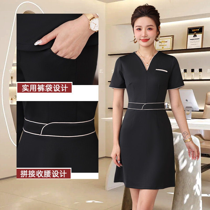 高端养生馆足疗店气质时尚 套装 工作服 修身 美容师工作服女V领短袖