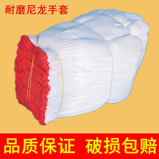 劳保耐磨尼龙手套 加厚透气工地工作干活白手套高弹性尼龙丝手套