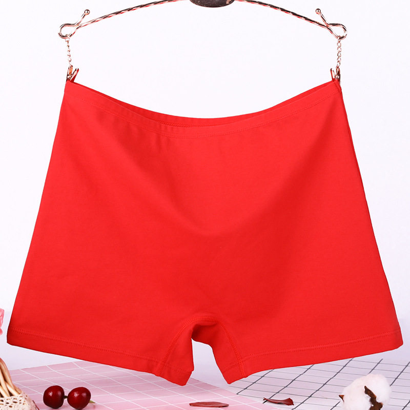 头夏 女纯棉高腰红全棉胖mm抗菌平脚齐腿安全短裤 大码 平角四角内裤