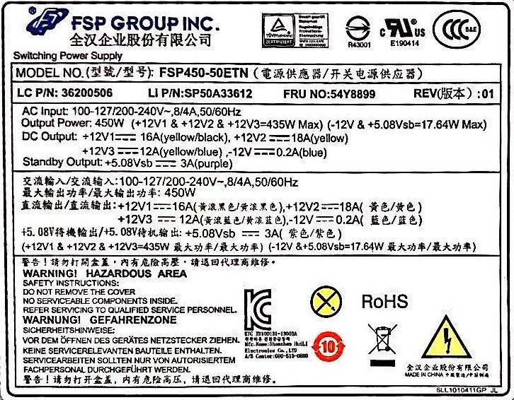 FSP280 适用 16FP 50ETN通用于HK380 40PA 联想14针电源FSP450