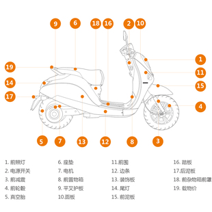 雅迪电动车配件大全外壳烤漆件原厂正品 前围后视镜坐垫尾箱盘碟刹