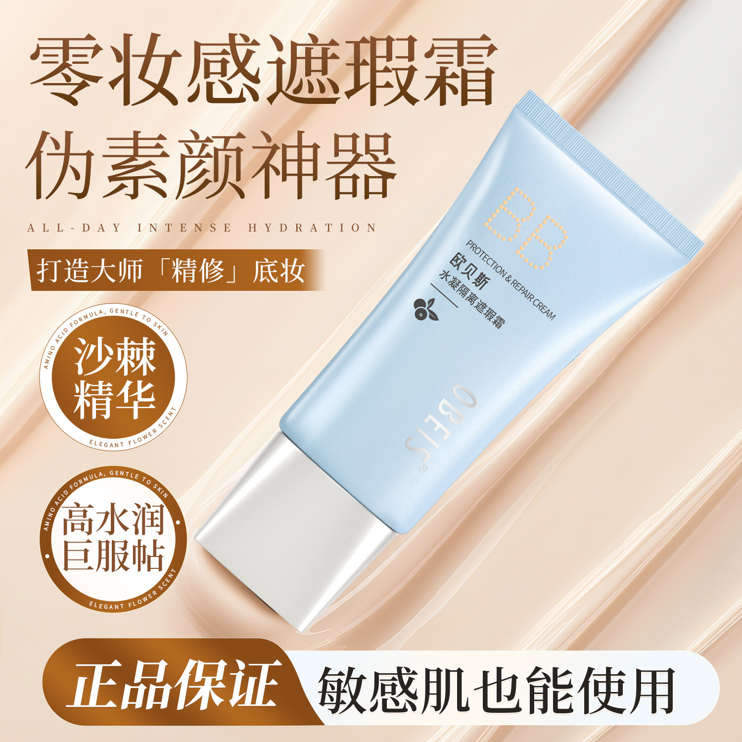 专用bb霜不假白遮瑕粉底 海洋至尊自然色素颜霜男士 欧豪同款
