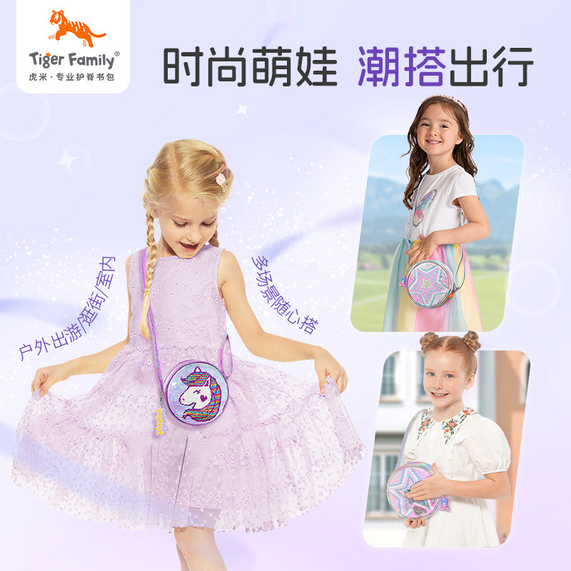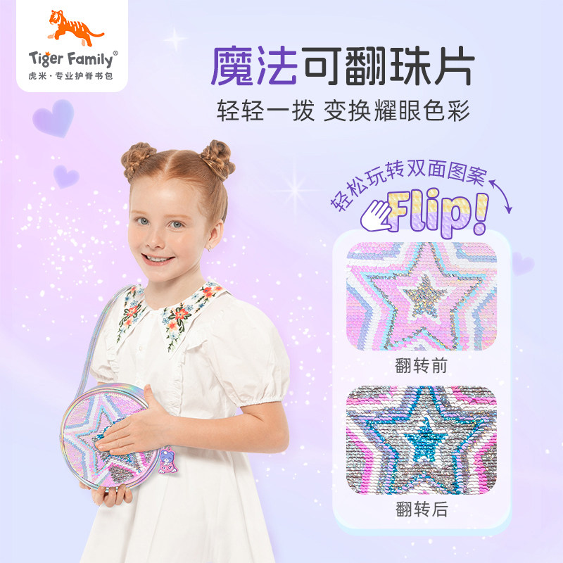 tigerfamily虎米儿童斜挎零钱小包亮片生日礼物背包 小猪佩奇