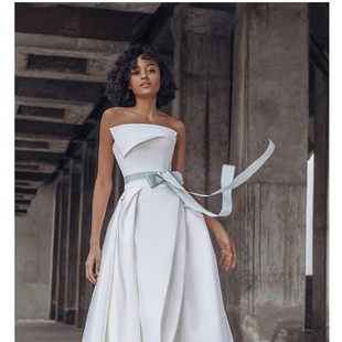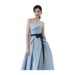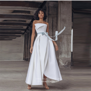 2026新款 公主抹胸齐地晚宴年会礼服演出成年 简约缎面婚纱礼服时尚