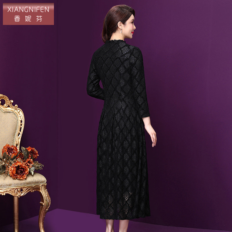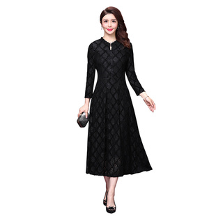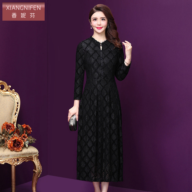 内搭贵夫人中长款 香妮芬2025秋季 修身 打底连衣裙韩版 蕾丝裙子 新款