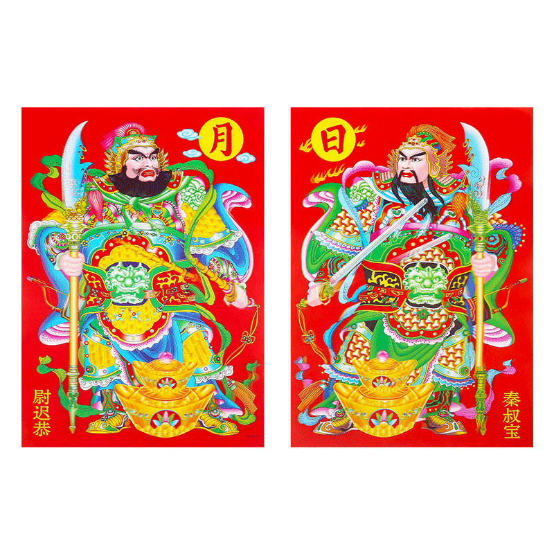2026立体秦叔宝导尉迟恭门神对贴春节别墅大门防水门贴纸新年年画