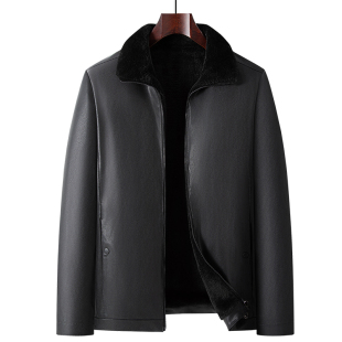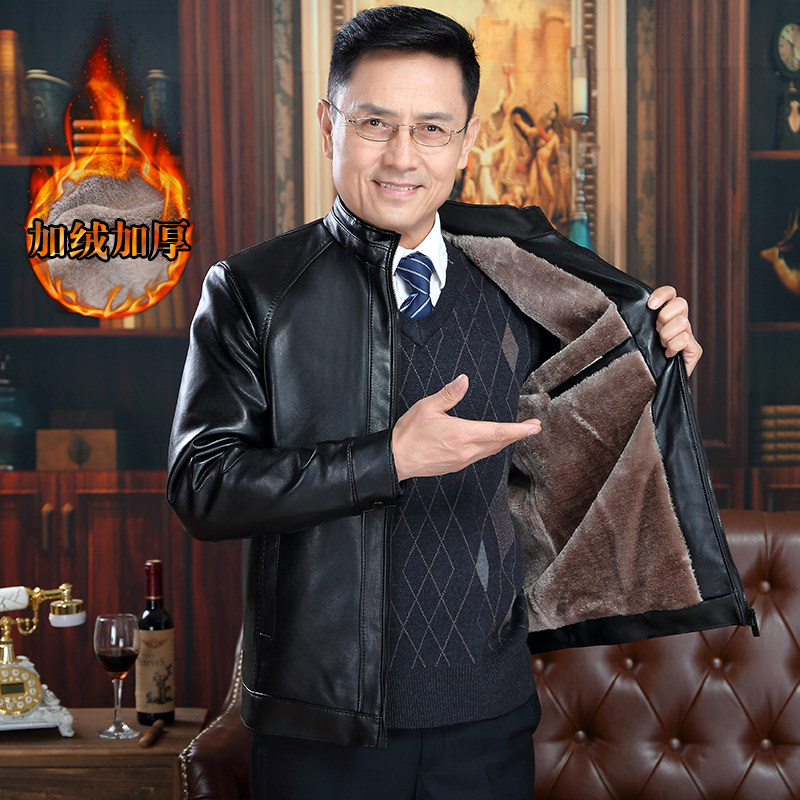 外套加绒加厚冬季 新款 秋冬PU皮夹克中老年男装 皮衣爸爸装 中年男士