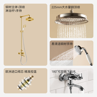 复古恒温淋浴花洒套装 风红古铜美式 龙头淋浴器 法式 FLOVA丰华卫浴