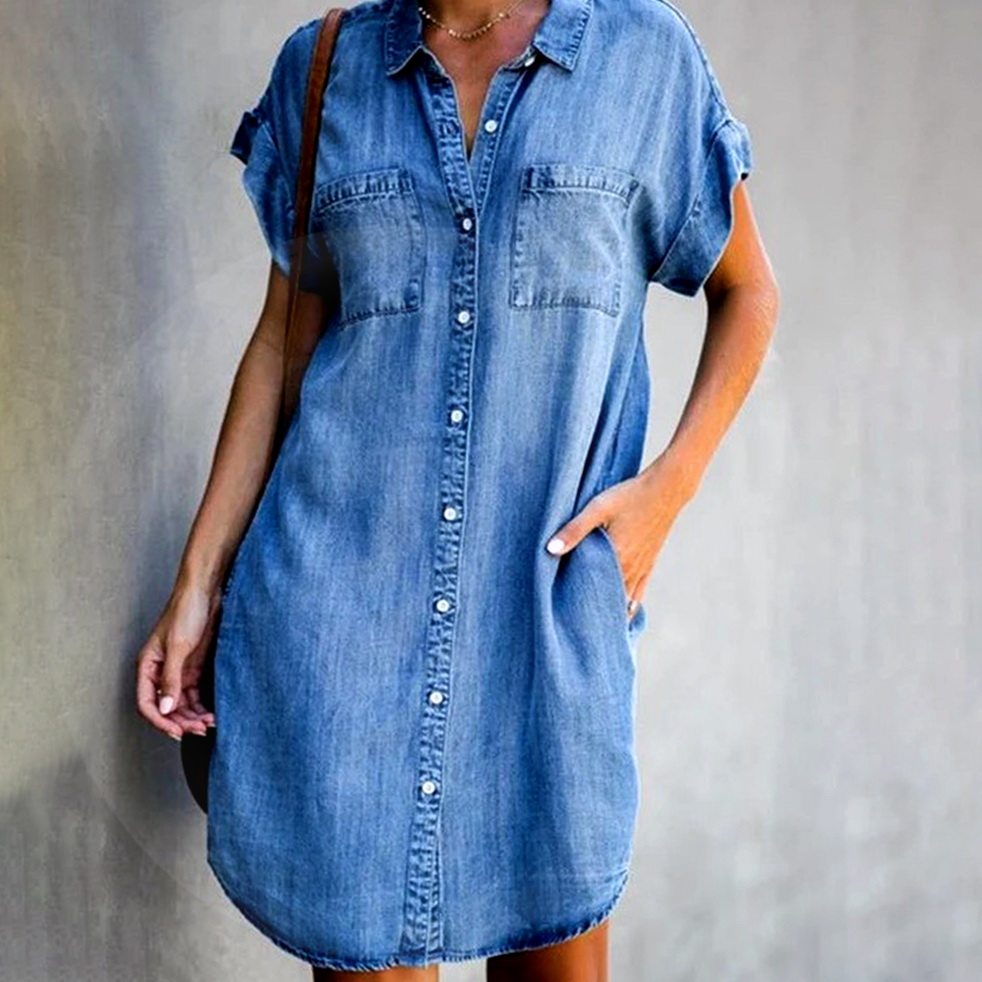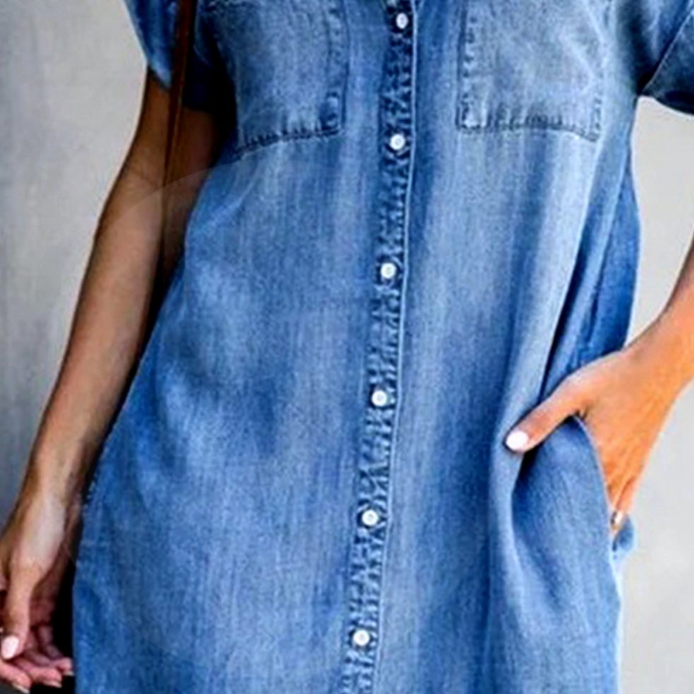 Hem Knee length Single Shirt Irregular Denim Dress breasted