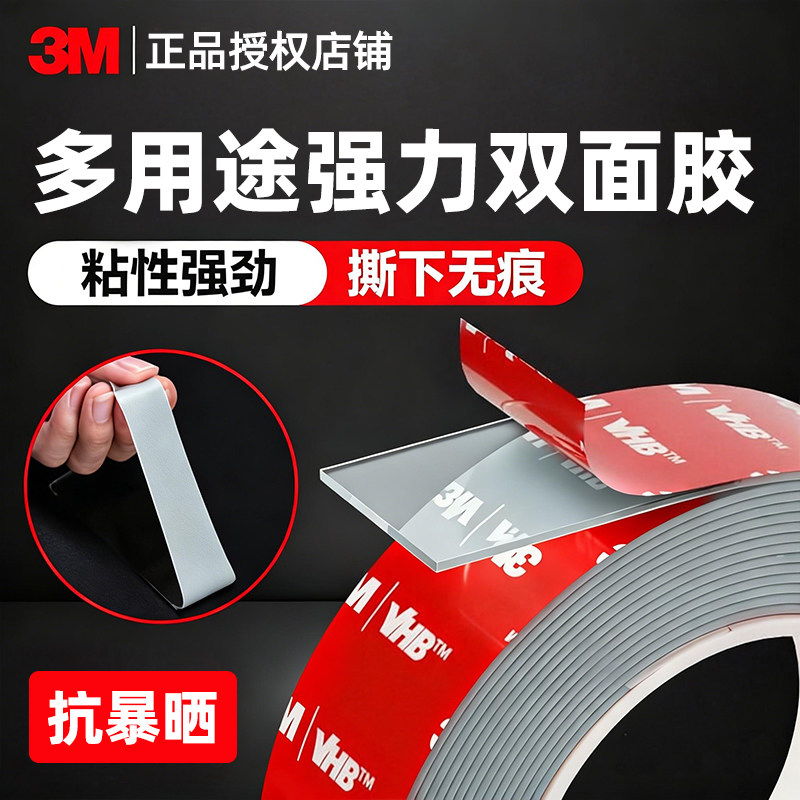 3M强力双面胶高粘度车用汽车专用粘胶两面贴无痕防水固定背胶三m
