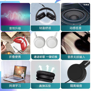 飞利浦TAH4105头戴式 有线音乐游戏英语网课学习耳机手机通用耳麦