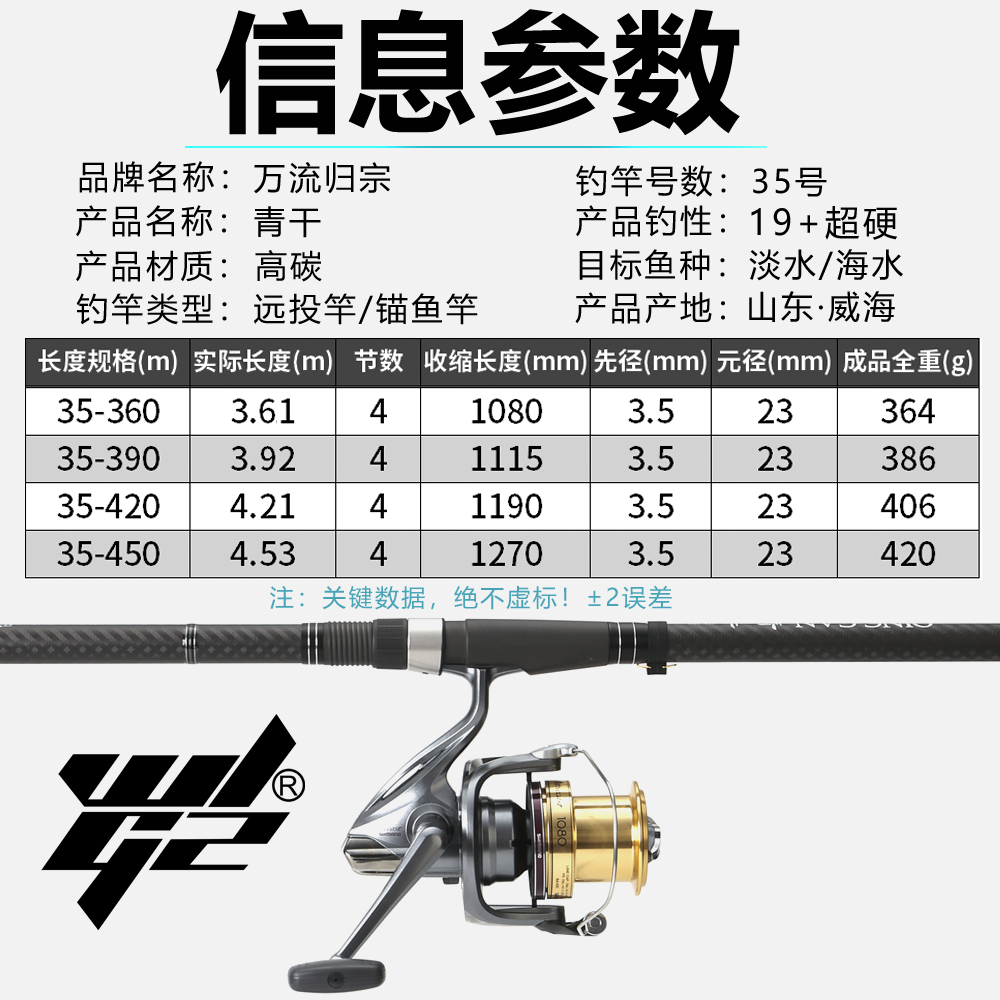 远投竿抛竿超硬35号超轻富士配件海竿套装 锚竿大物滑漂青干锚鱼竿