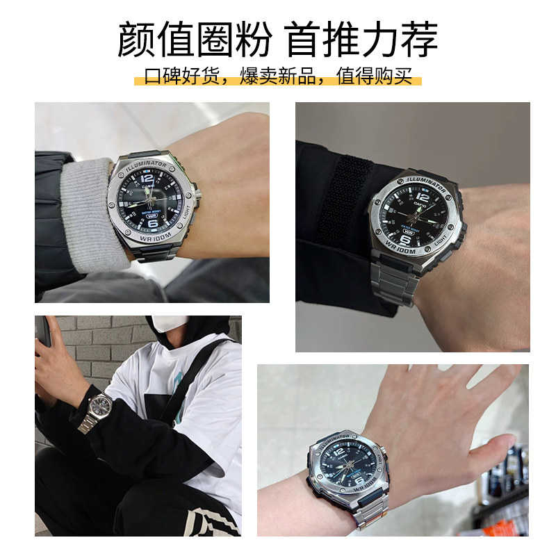 Casio卡西欧手表男款 休闲运动男表学生电子石英表MWA100H 复古时尚