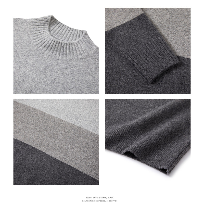 加厚毛衣男羊毛衫 羊绒衫 条纹半中高圆领韩版 男士 潮打底针织衫 冬季