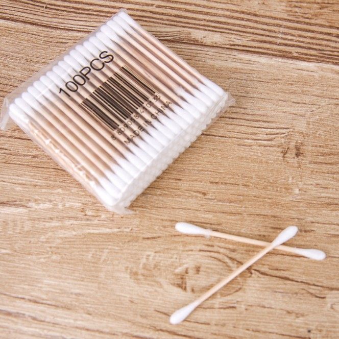一次性化妆棉签棒 脱脂棉卫生棉棒美容棒 100支袋装 木棒双头棉签