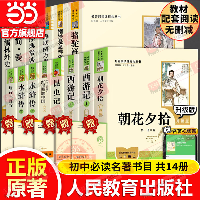 当当网原著正版 七年级朝花夕拾西游记红星照耀中国昆虫记红岩骆驼祥子八上册九下水浒传简爱 初中必读名著十二本课外阅读书籍人教版
