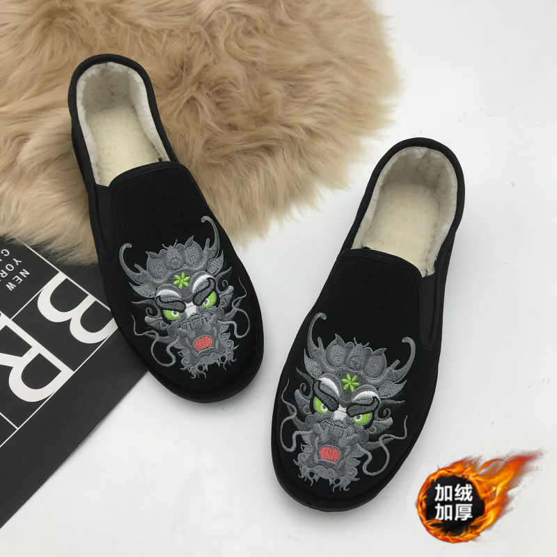 男士 休闲棉鞋 加绒保暖鞋 网红同款 刺绣脸谱老北京布鞋 2022冬季