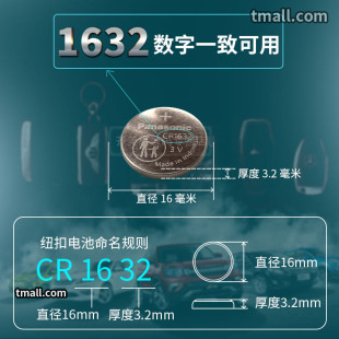 L3丰田凯美瑞汉兰达汽车钥匙遥控器锂电子锐志纳智捷宝骏原装 松下CR1632纽扣电池锂圆3V适用于比亚迪S6