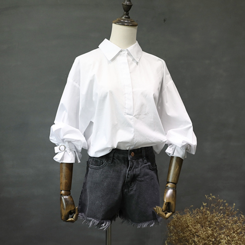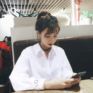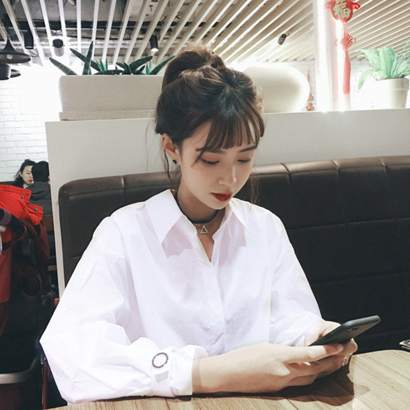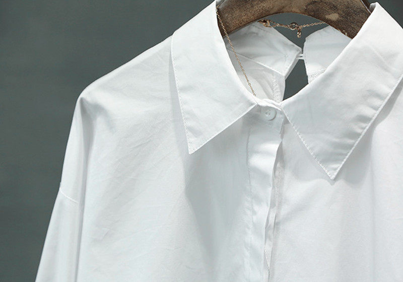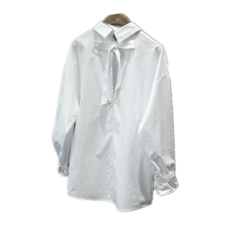 纯色小心机衬衫 性感露背长袖 纯白色上 个性 2019早秋冬ins同款
