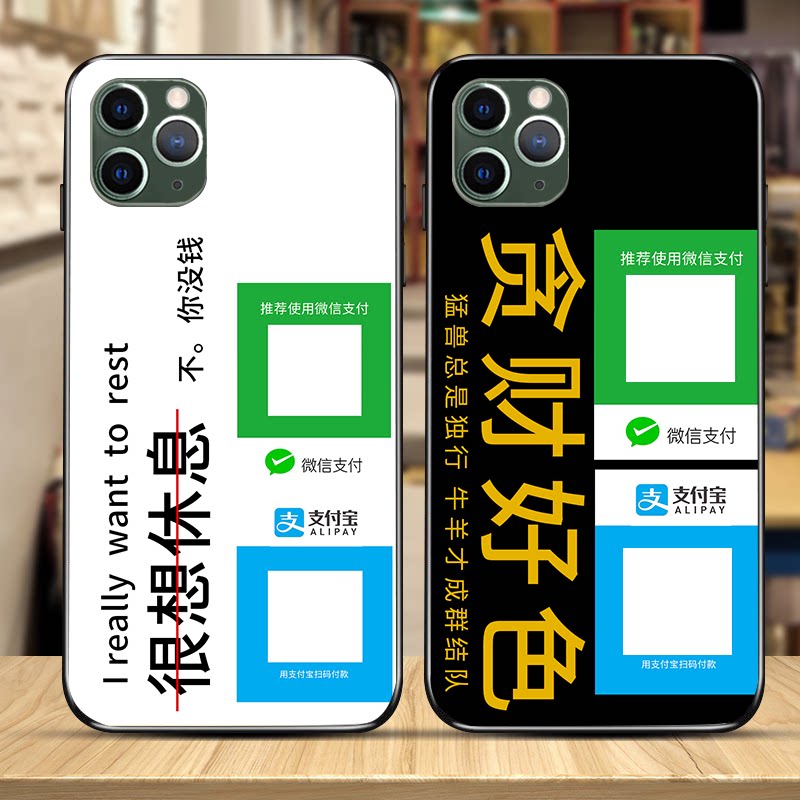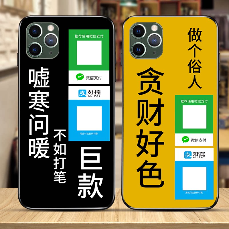 新款 玻璃壳适用苹果15promax华为vivo小米oppo荣耀70红米K540真我一加ACE2任意机型保护壳个性 二维码 定制收款