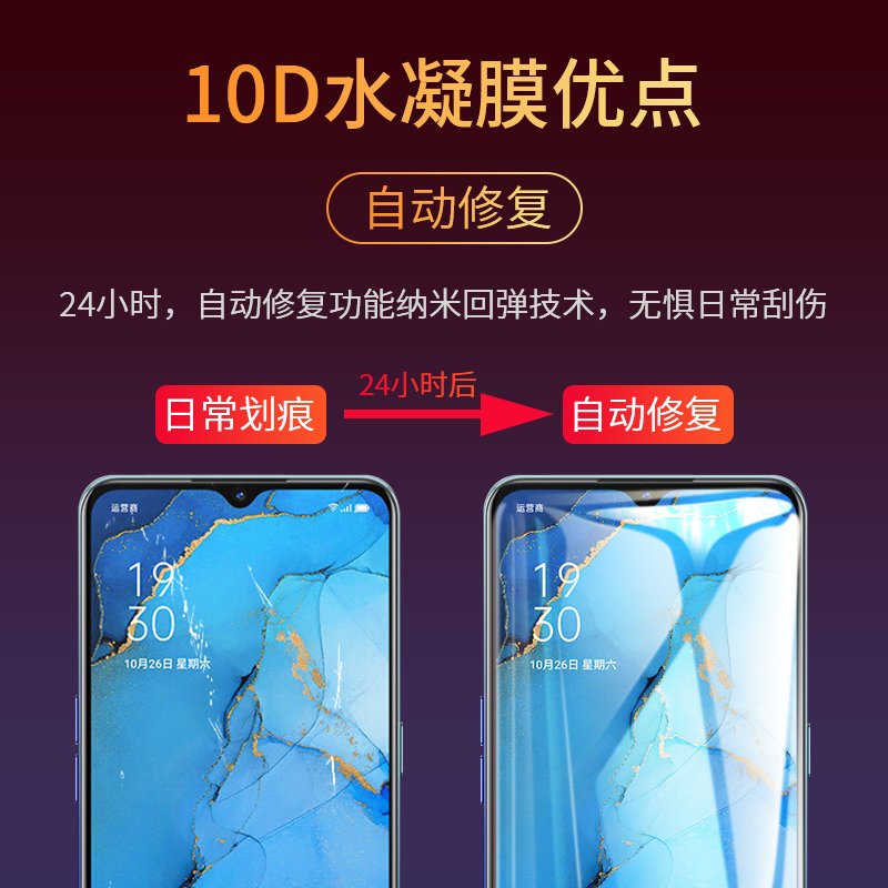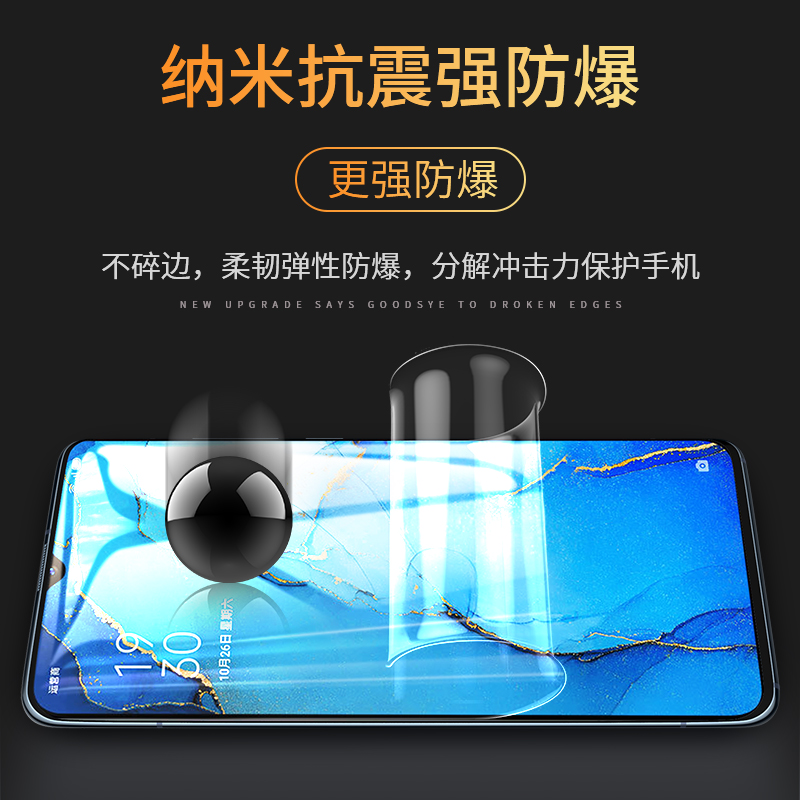 适用opporeno3pro钢化水凝膜reno3元 5g手机膜opopreno3por全屏oppo3pro曲屏opporen3全包35g防摔保护软膜 气版