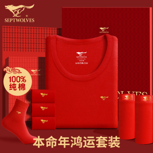 女 纯棉2026属马年衣服红色秋衣秋裤 七匹狼本命年保暖内衣套装 男士