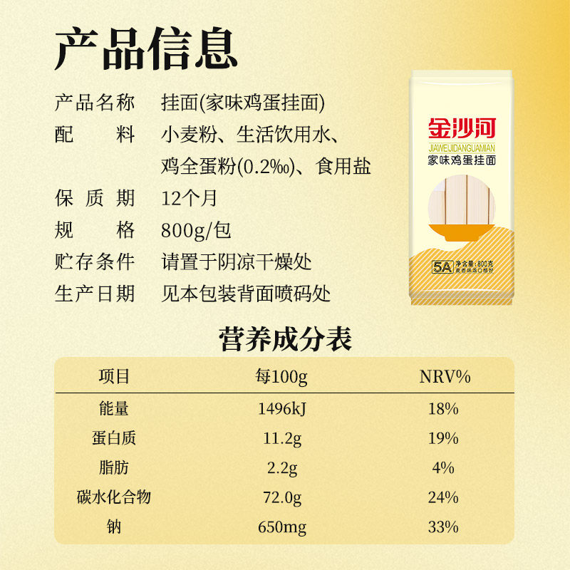 金沙河鸡蛋面条家味鸡蛋早餐方便速食挂面拉面非手工面细挂面