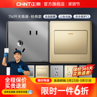 正泰开关插座面板多孔五孔家用86型暗装 带usb开关插座面板7M金色