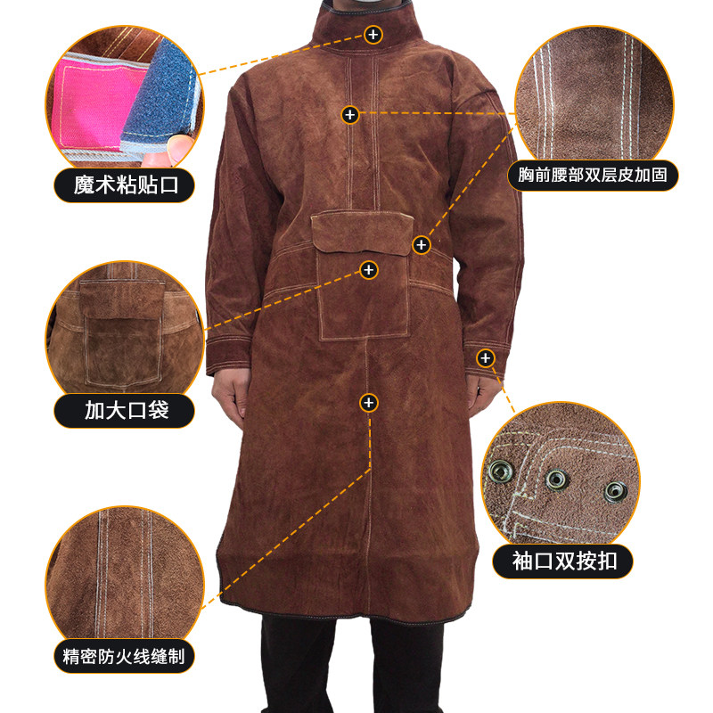 焊工围裙牛皮反穿衣烧焊长袖 防护服隔热耐高温工作服电焊防护用品