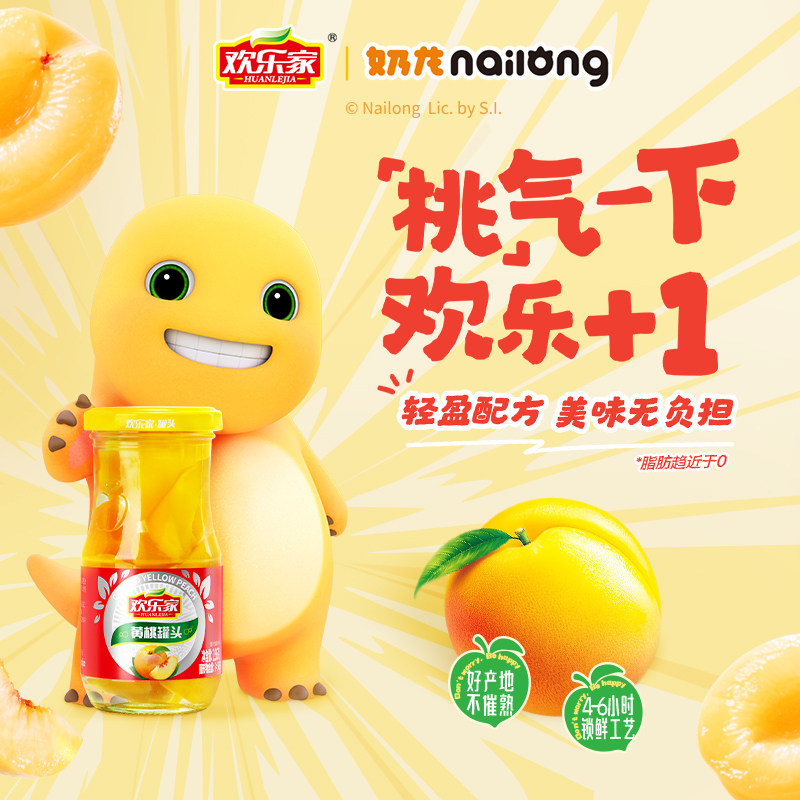 联名 水果罐头正品 欢乐家 雪梨山楂椰果橘子黄桃罐头 奶龙代言