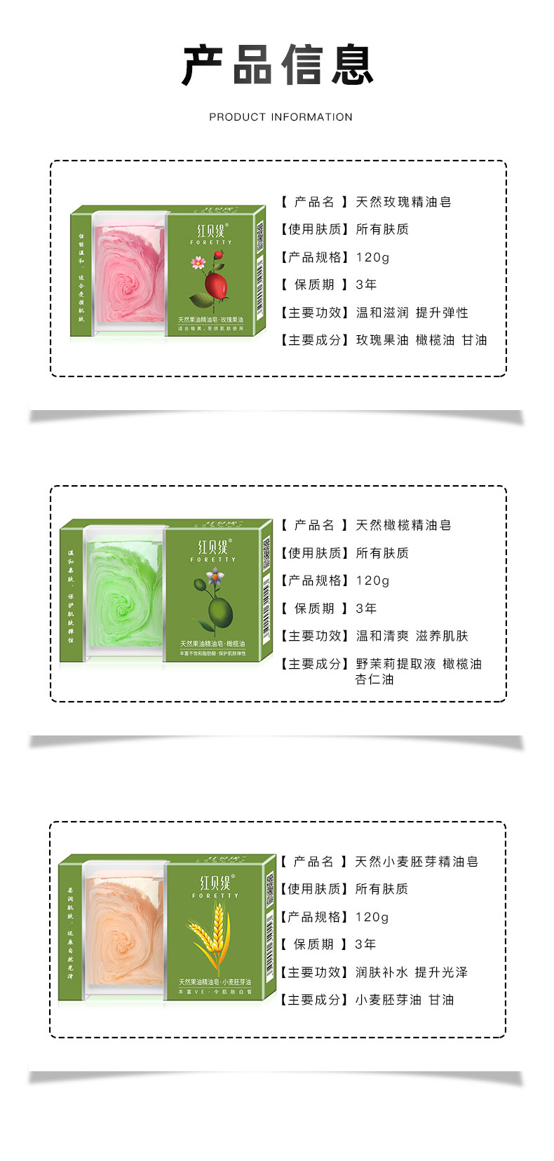 红贝缇果油精油皂小麦补水玫瑰沐浴清洁面天然橄榄香保湿 润肤盒装