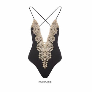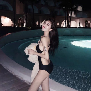高级感超暴露泳衣女款 韩国温泉比基尼黑色连体性感2025年新款 爆款
