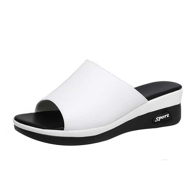 中跟厚底坡跟百搭一字凉拖鞋 真皮凉鞋 女外穿 新款 蜀姬百丽2025夏季