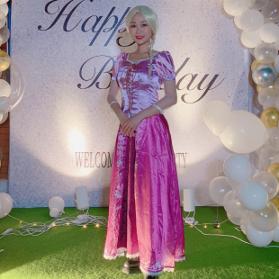 长发公主裙乐佩公主魔发奇缘亲子服装 迪士尼裙子连衣裙紫色仙女裙