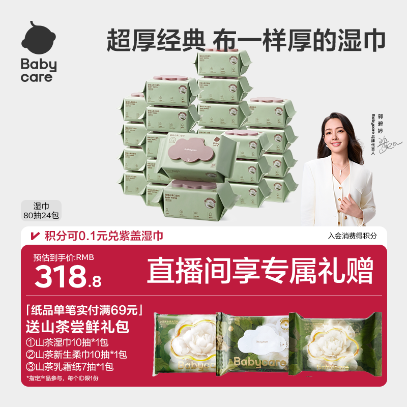 babycare婴幼儿湿纸巾加厚手口专用儿童新生儿宝宝家庭湿巾大包装