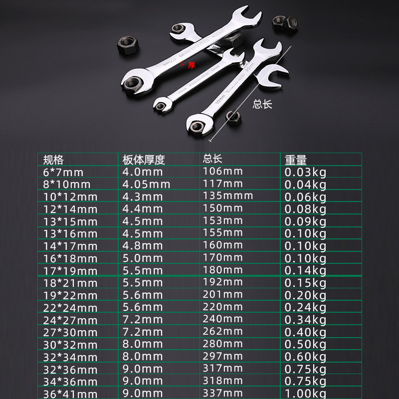 汽修工具 碳钢双头呆扳手 精准开口 扭矩强劲 双头开口扳手