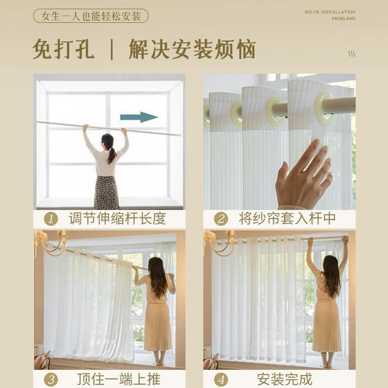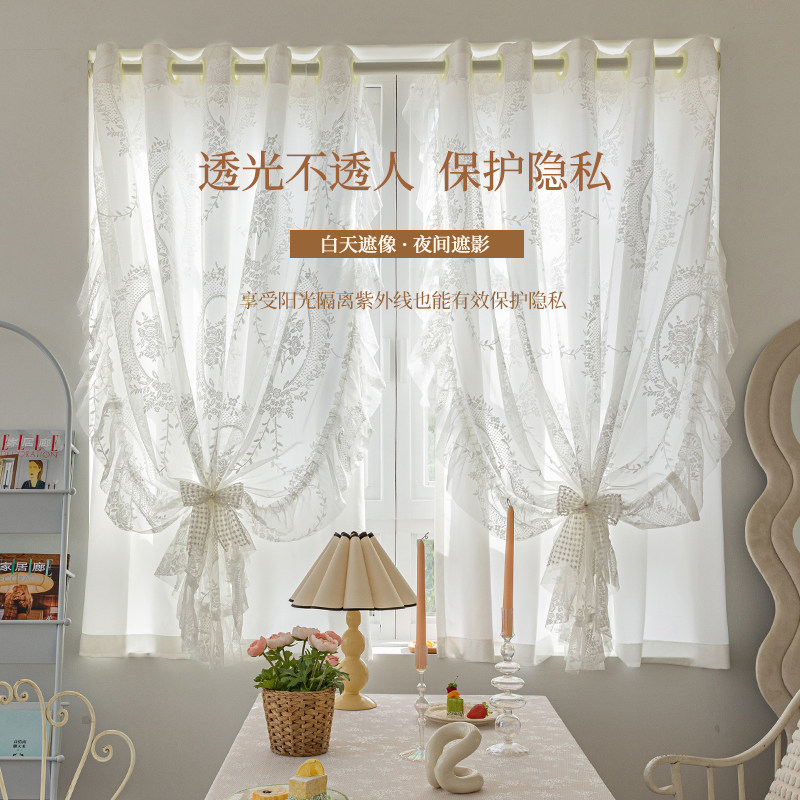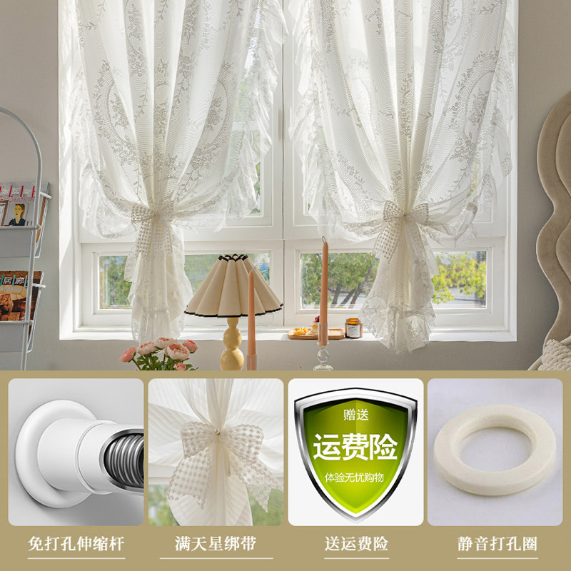 白纱帘 田园风2026新款 窗帘纱帘透光不透人飘窗轻奢免打孔安装 法式